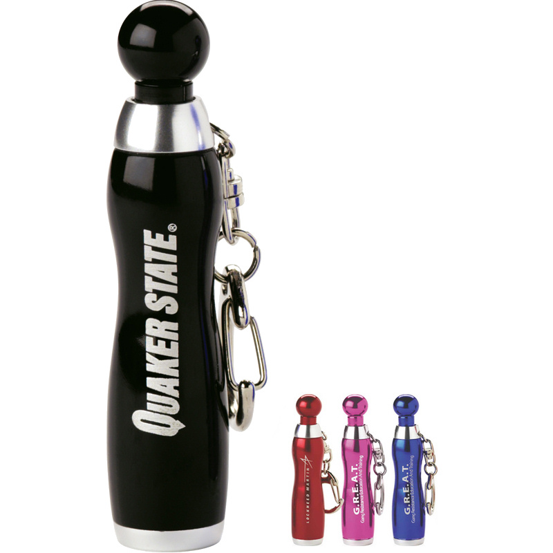 A unique designed promotional LED keylight in quality aluminum with your custom logo imprinted. Sleek and modern design in vibrant colors. Batteries are included. Key Chain attachment. Promotional LED lights are known for their power and low power usage.