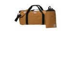 Carhartt - the name of quality with your logo custom screen printed or embroidered. This durable, versatile duffel keeps water out and can hold all your jobsite or travel must-haves. It comes folded inside a utility pouch that can be reused to hold additional tools and gear. 500D polyester Rain Defender durable water repellent (DWR) Large zippered opening into main compartment Dual webbing haul handles with comfort grip exterior slash pocket. Detachable, adjustable shoulder strap with pad and Carhartt label sewn on front. Can be used for duffel storage or as a pouch for small items. Dimensions: 11"h x 21.5"w x 11"l Note: Bags not intended for use by children 12 and under.