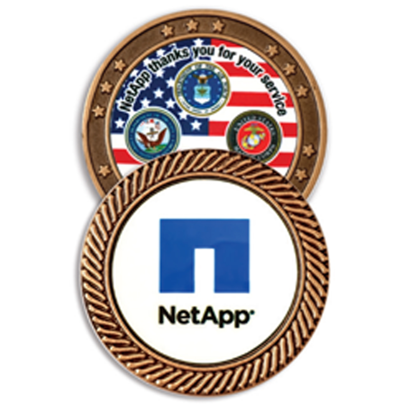 Made in USA Challenge Coins with 1 or 2 sided full color imprint. Choice of silver or gold matte or antique finish. 4 color process with clear laminate. Great for military, races, incentives or sports! Standard size is 1.5 inches. 1.75 inches available!