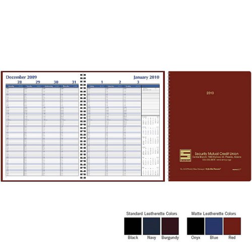Functional and detailed, this weekly time manager makes efficient record-keeping a breeze.The planner divides the day into fifteen minute slots from 7 a.m. to 8:45 p.m. This is for 2010 calendars, call 888-332-ADCO for even more ideas!
