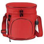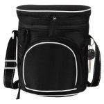 A quality custom 12 pack cooler with double compartment, resembles golf bag, is made of Poly 600D and is a best seller! The main compartment is heat sealed and insulated. The top lid has has a second compartment for additional accessories. The front zippered pocket has an inside organizer. The two sides consist of large mesh pockets. Also comes with adjustable accented strap, "D" ring for keys, and a clear ID window on backside. Very durable and functional. 9.25" W x 11.5" H x 6" D. We love this affordable quality custom golf cooler.