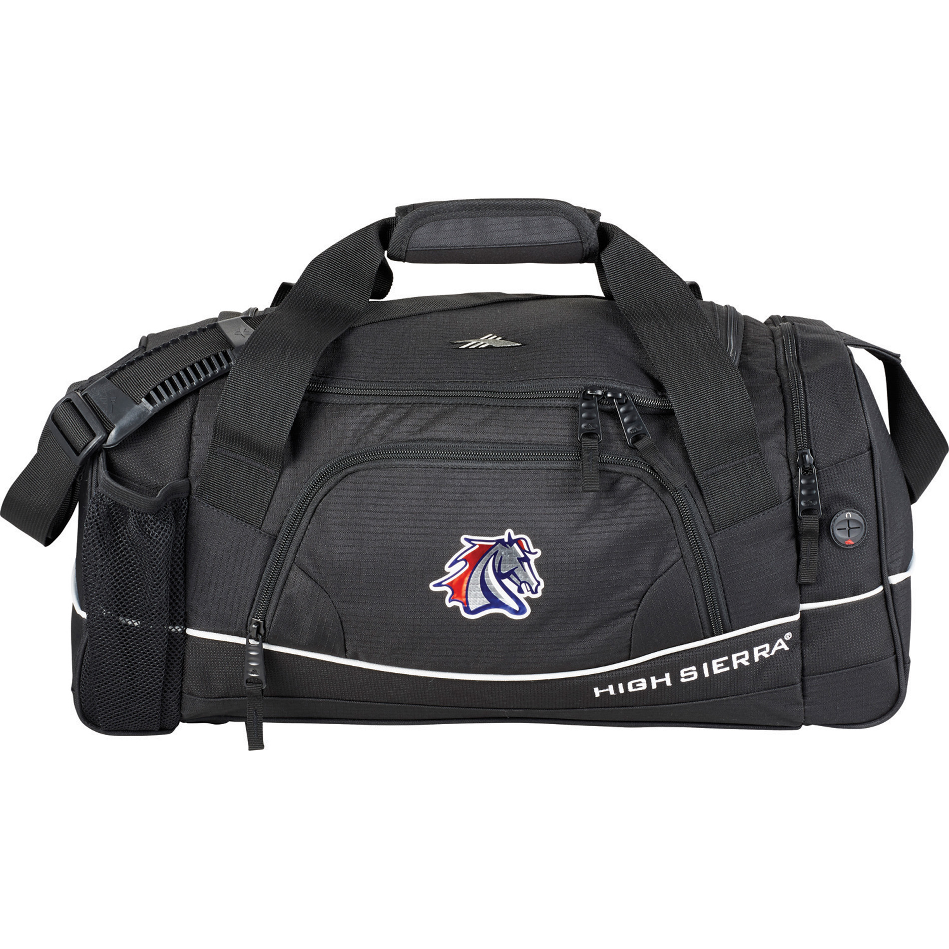 This large, roomy duffel bag features a main compartment with U-shaped zippered opening, and a convenient, zippered end pocket with room for a smartphone and a port for a charging cable so your device stays where it belongs and charges at the same time. This duffel comes with a mesh water bottle pocket. Perfect for personalization! FREE 1-DAY RUSH PRODUCTION AVAILABLE!