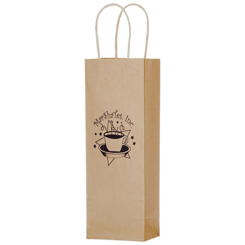Natural Kraft Wine Bottle Bag is made from 100% recycled materials. The bag holds one wine bottle. Whether you are giving out a bottle of wine as a holiday gift, or just need this particular size and shape for your custom goodie bag, our wine bag should fit the bill! We love our paper strong wine bags.