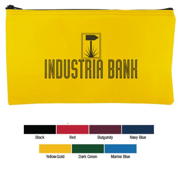 Horizontal Bank Bag made out of laminated nylon with a zipper closure. 11" x 6" in dimension - a perfect deposit bag. Comes in 7-colors! Multi-Color imprint available!