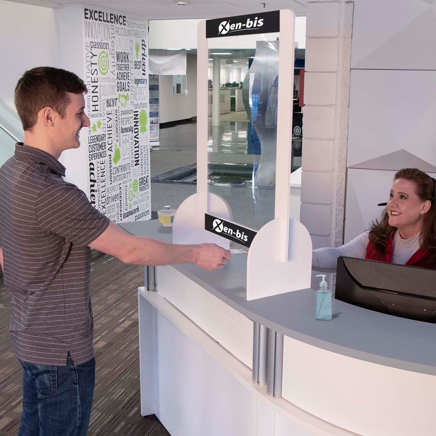 Our new sneeze guard protective barrier is a versatile product can be used in a variety of spaces. Great to help protect both workers and customers. Included removable feet let this barrier stand alone on floors or countertops. Included hook and loop fasteners can be attached to counters for strategic barrier placement. Clear window allows for easy communication through barrier and the display can be wiped down and disinfected quickly and completely. Available single-sided only with a Full-Color Imprint!