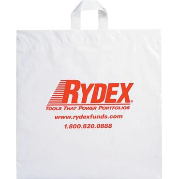 Promotional Soft Loop Handle Custom Plastic Bags 18"W x 18"H x 4" Gusset 3.0 mil. white low density with your logo by Adco Marketing. Perfect for tradeshow or retail outlets! Do you need other plastic bag sizes not on our site? Maybe a 18" x 16" x 6"? or something custom? Just call 888-332-ADCO and we'll email you ideas, sizes and pricing!